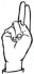 На ћирилици написано БЛАЖА БОГИЋ састоји се из 10 слова [?]. Исписано ћириличном једноручном азбуком за глувонеме: